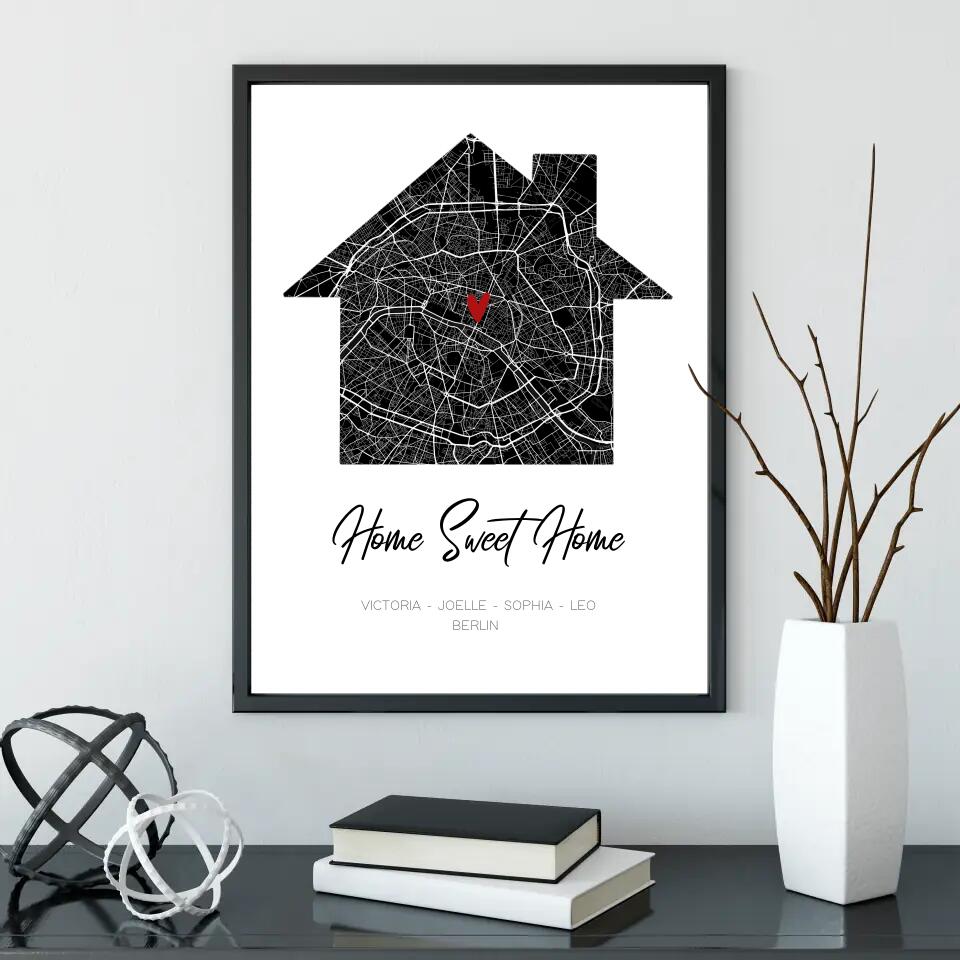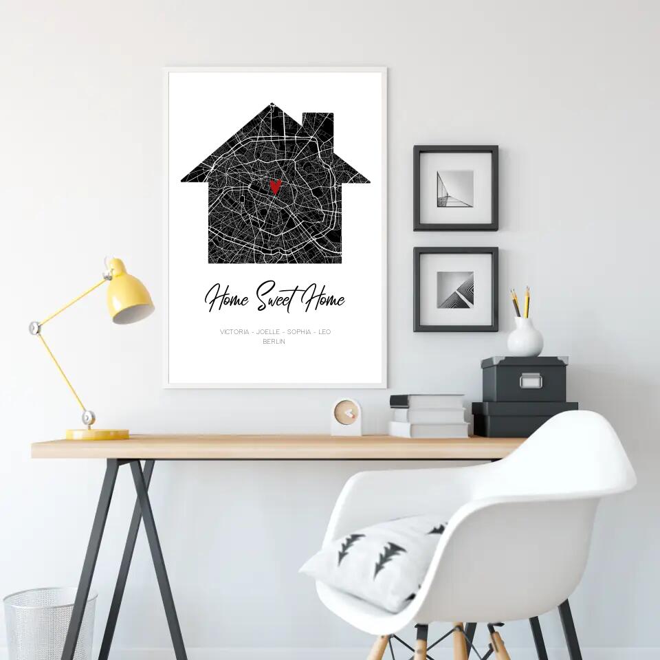 Gib einfach eure Adresse ein und sieh zu wie aus der detaillierten Strassenkarte ein modernes und zeitloses Wohnaccessoire wird.