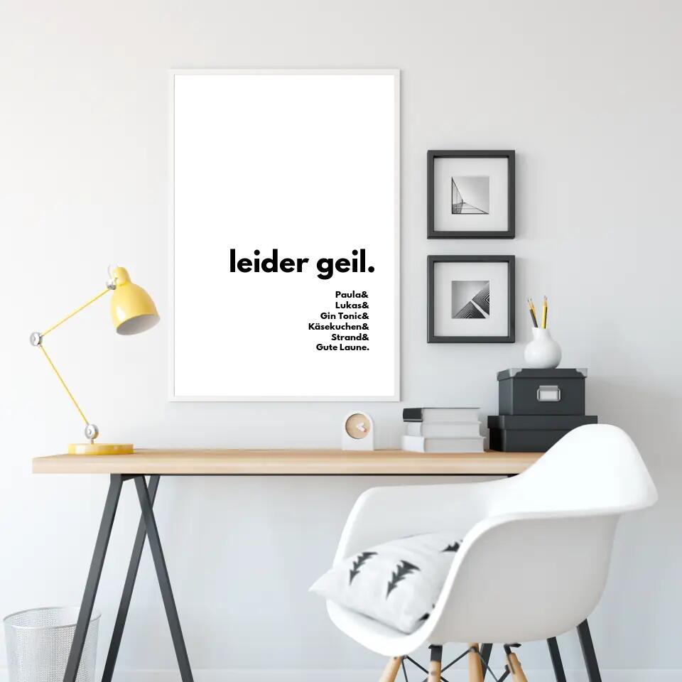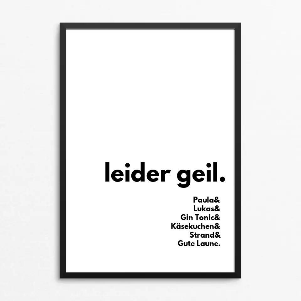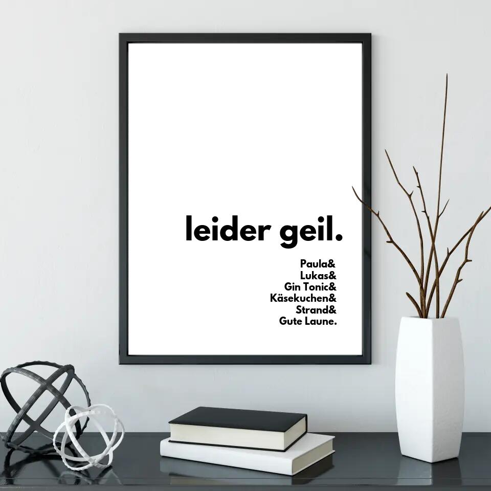Personalisiere dieses Poster mit euren Namen und allen Dingen die beinahe genauso geil sind wie eure Liebe.